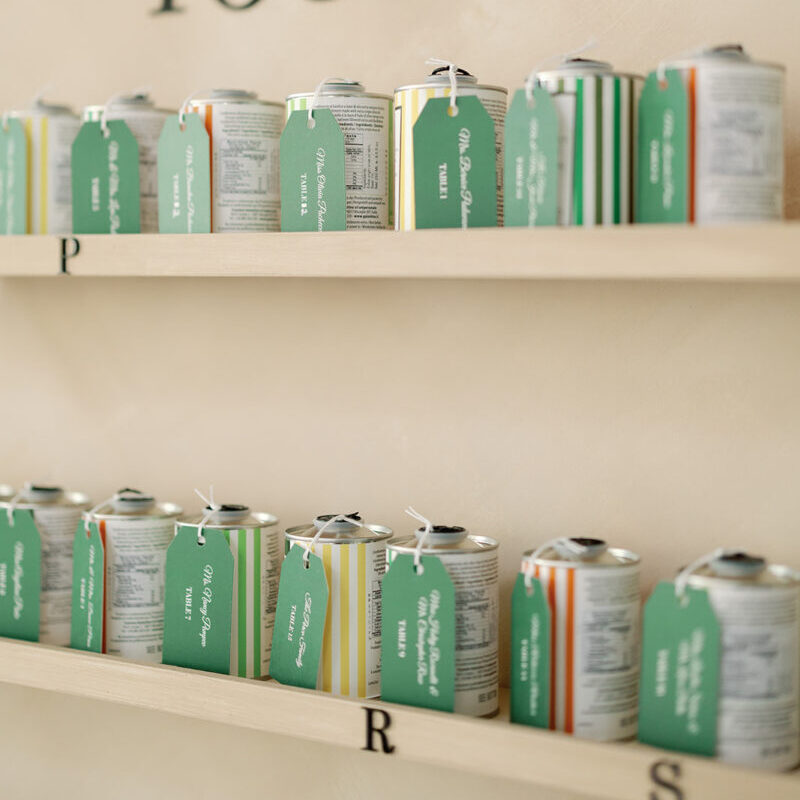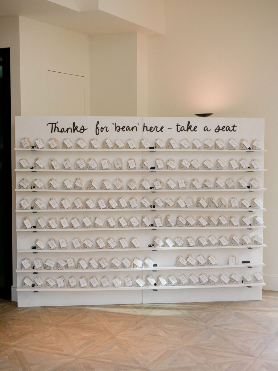 From custom tequila bars to abstract arbors and curated afterparties, couples are choosing design details that feel elevated, fun, and unmistakably their own. Even unconventional placecards are proving that no detail is too small to make an impact. This year, we saw couples create experiences with edible pear placecards and tambourine escort cards, blurring the line between design and experience.
