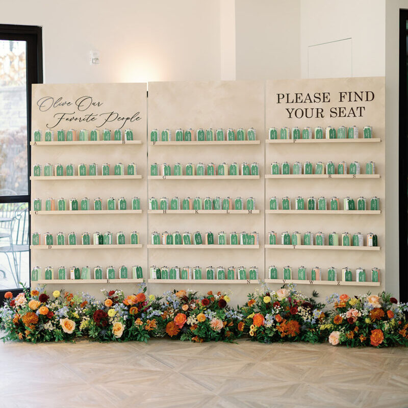 Creative seating chart displays are becoming so much more than a list of names. From “sip and be seated” champagne walls to escort tables featuring personalized favors, these designs do double duty as décor and a warm welcome, guiding guests while adding a memorable moment to your day.