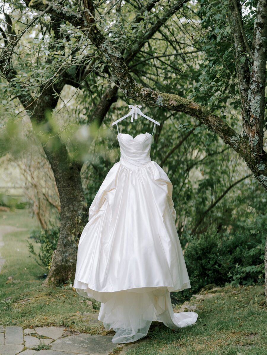 Lauren began the day in the Playhouse, immersed in anticipation alongside her closest friends. Turning heads all day, Lauren wore a custom-fitted Devonne Pronovias Privée Satin gown, with a princess silhouette, sweetheart neckline, draped bodice, and voluminous skirt. Iconic Prada leather slingback pumps and a sleek parted bun completed her sophisticated look.