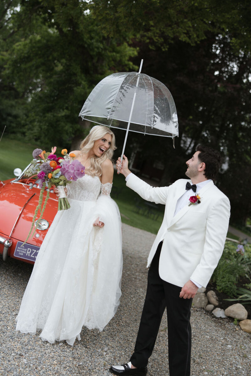 - Clear Umbrellas: Ask your coordinator or photographer to have a few umbrellas on standby to capture iconic outdoor moments.