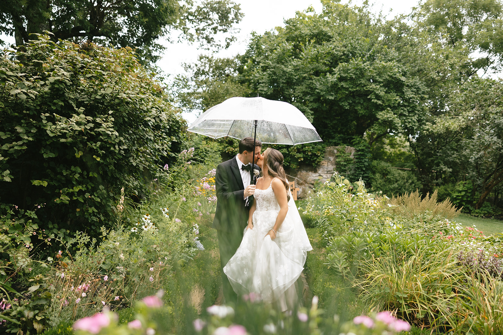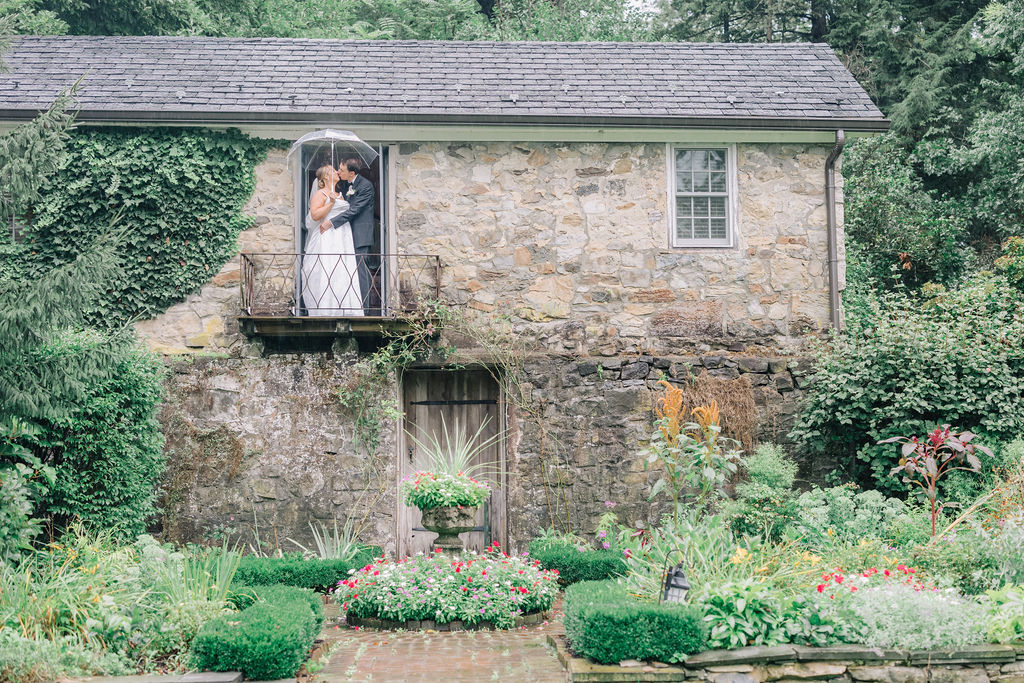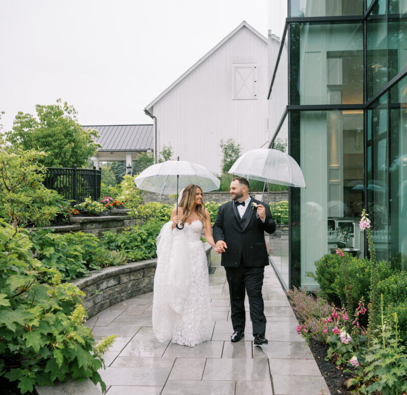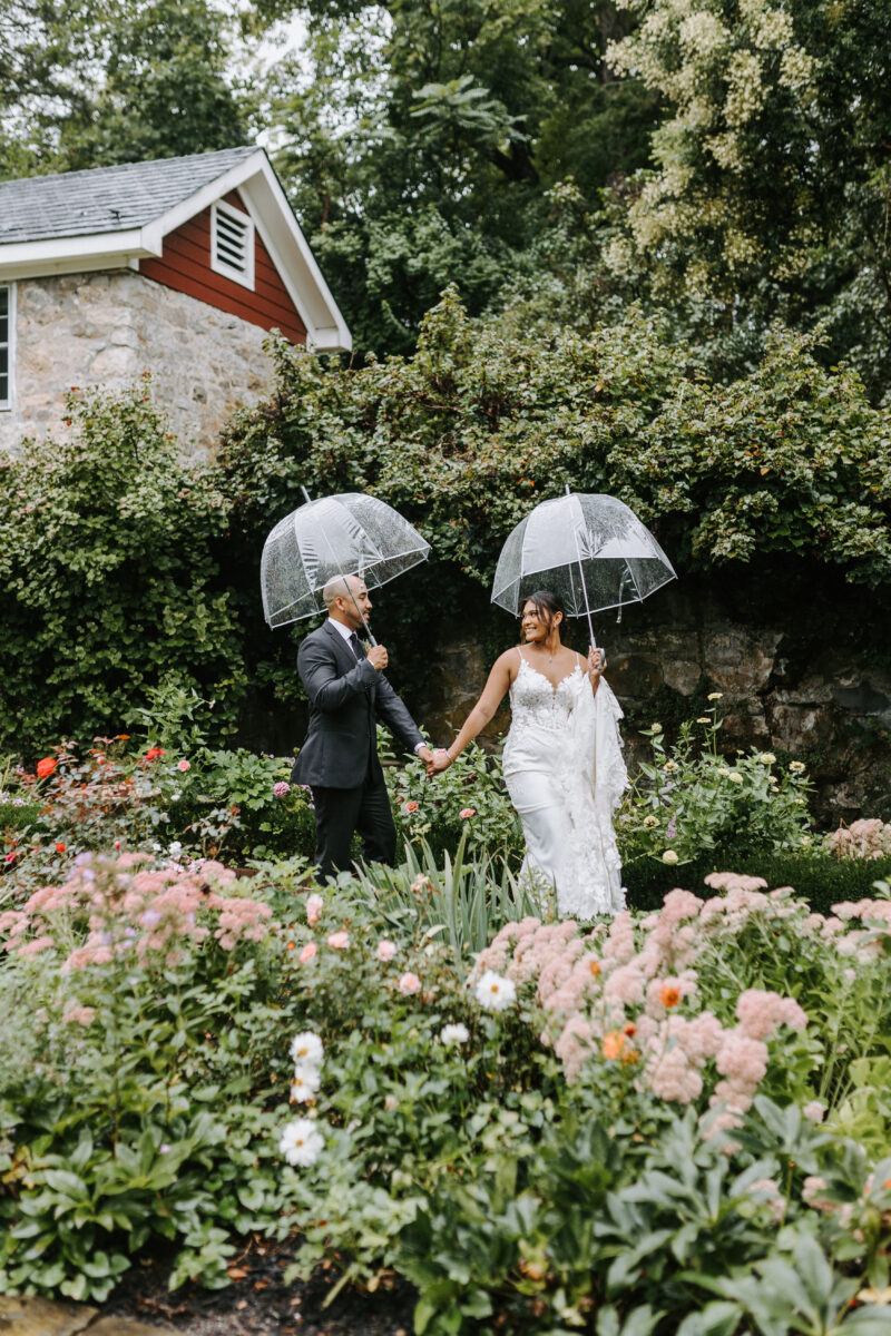 When planning your wedding, you can select the perfect dress, book your dream venue, and coordinate every detail down to the place cards—but one thing you can’t special order is sunshine. At Crossed Keys Estate, every wedding is beautiful and joyous, no matter the weather. We’ve hosted stunning celebrations in every season, and some of our most memorable weddings have been under stormy skies. We’ve seen it all and will guide you through it. Here’s our advice on how to prepare and make the most of every moment if it happens to rain on your wedding day.
