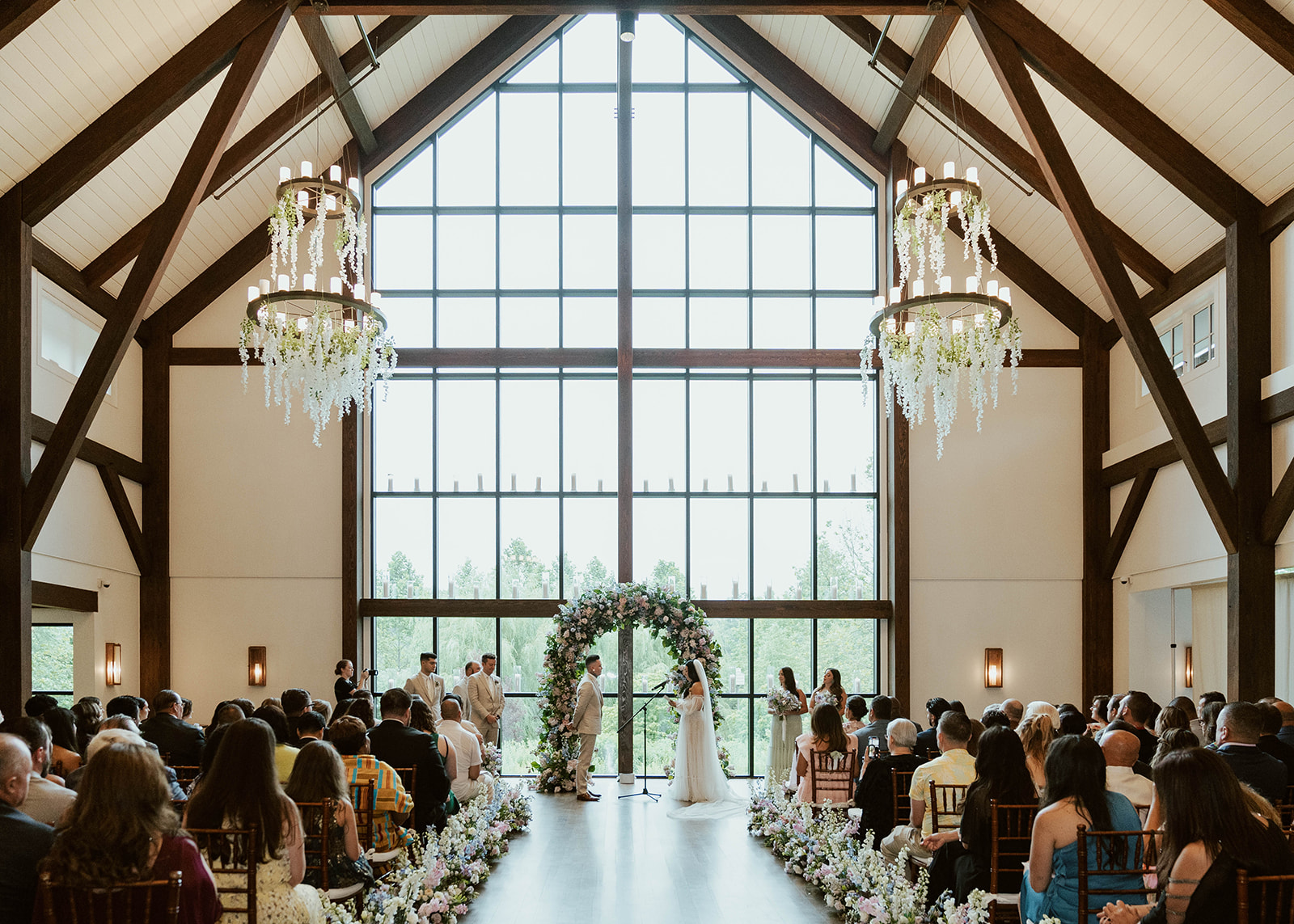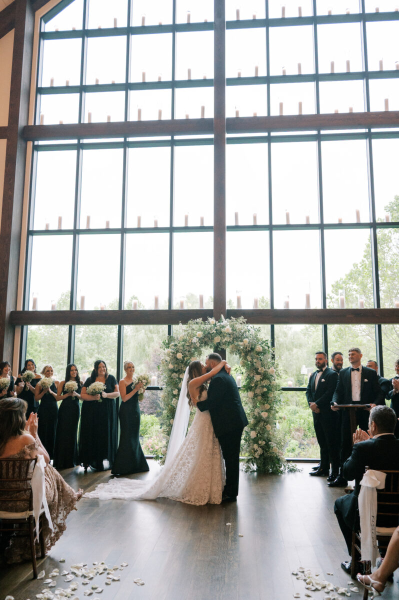 The key to a stress-free wedding day often comes down to loving Plan B as much as Plan A. If the weather does not permit an outdoor ceremony, you’ll exchange your vows beside sweeping views of the gardens and grounds just beyond the Farmhouse’s wall of windows. Feeling surrounded by nature, while you and your guests remain safe, dry, and comfortable. After the ceremony, guests flow to the Conservatory for their first cocktails and bites of the night, while our team transforms the Farmhouse into your dream reception.