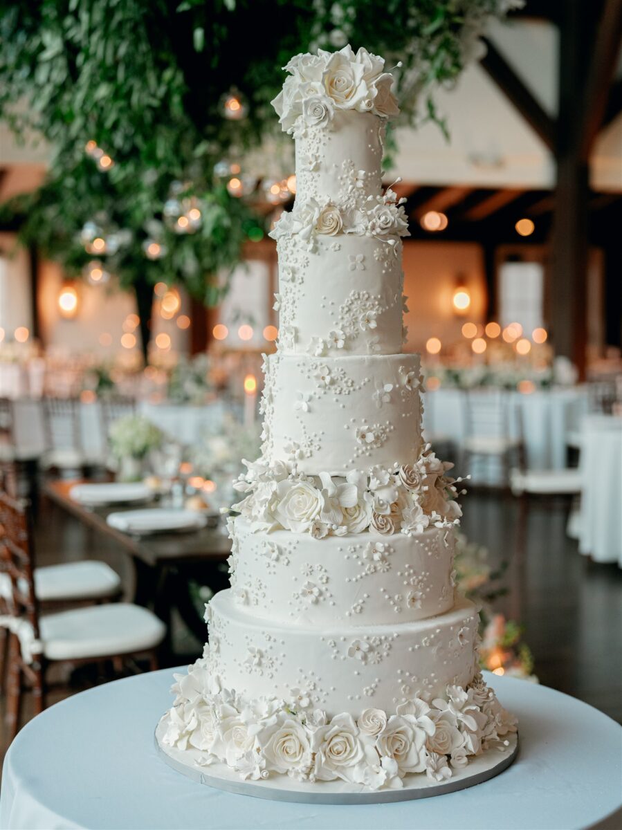 Honoring her parents’ Pittsburgh roots, they included a beloved hometown tradition—a Pittsburgh Cookie Table filled with homemade treats from family members. Adding to the sweetness of the evening, their towering tiered cake, adorned with edible floral details, was a masterpiece by My Daughter’s Cakes—a confection almost too beautiful to cut.
