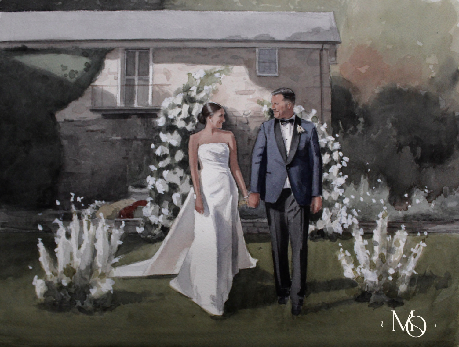Adding to the artistry of the moment, Mo Myra Illustrations captured the newlywed couple walking up the aisle on canvas, painting live throughout the night to create a one-of-a-kind keepsake.