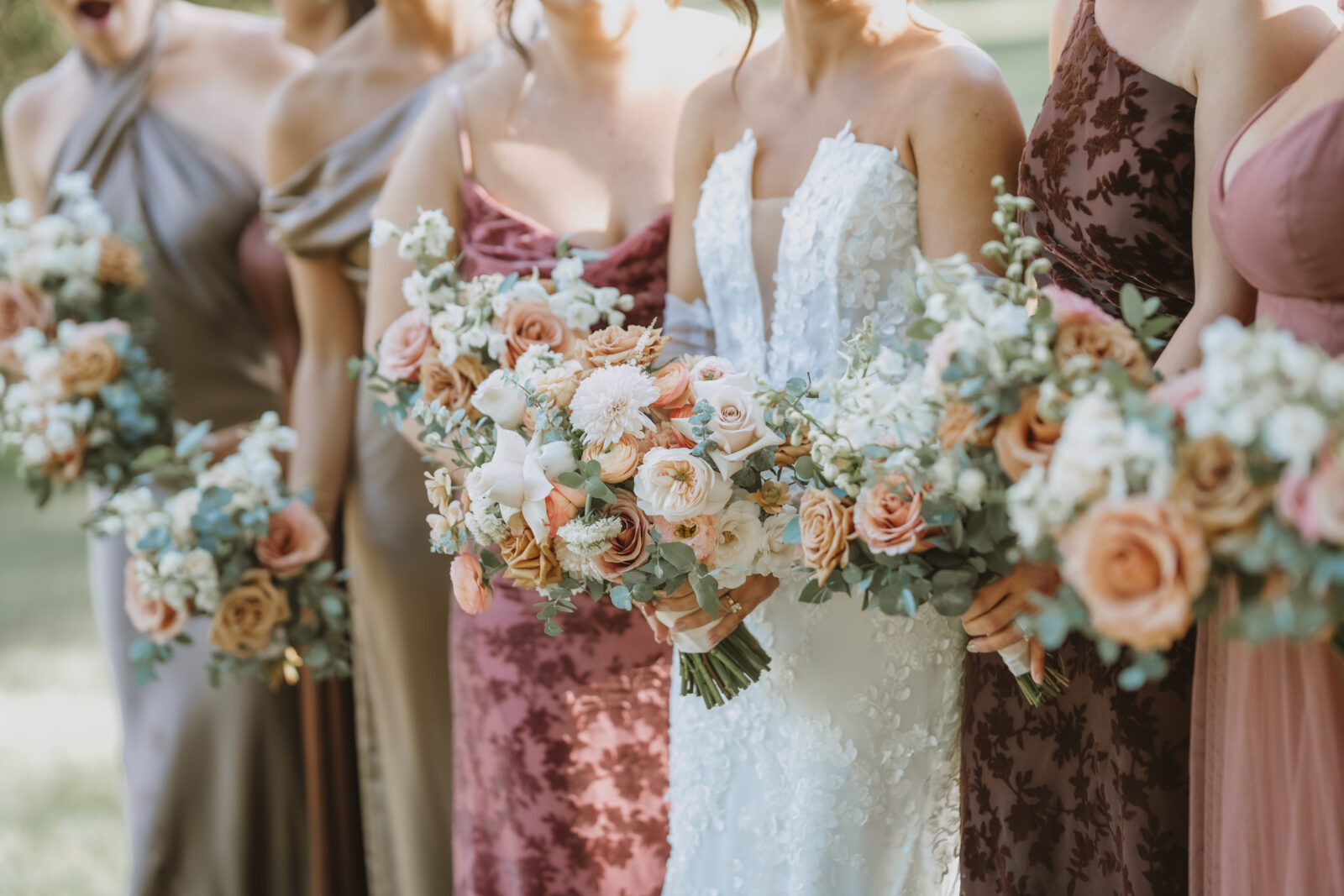 Recognized as Pantone’s color of the year, Mocha Mousse brings a rich, earthy warmth to your wedding palette. A modern take on brown tones, mocha pairs beautifully with bright whites, deep copper, and terracotta for a rustic yet elegant vibe. Incorporate mocha in textiles like bridesmaid dresses table linens or drapery, and add metallic accents such as gold candleholders for an elevated touch. Floral Pairings: Toffee roses, mocha-toned chrysanthemums, amaranthus, and dried grasses add depth and texture. Pair them with white or cream blooms like lisianthus or ranunculus for a balanced, sophisticated arrangement.